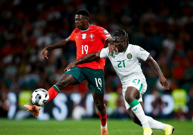 欧洲世界杯预选赛第一阶段从小组赛开始。世界排名第五的葡萄牙将在主场迎战爱尔兰。上半场,C罗击中立柱,布鲁诺·费尔南德斯错失得分机会,伊纳西奥头球破门。下半场,内维斯射门被挡,维西尼亚远射被扑出,C罗错失点球,补时阶段鲁本·内维斯头球破门。最终,葡萄牙1-0险胜爱尔兰。比赛一开始,葡萄牙就错失良机。 C罗禁区前沿远射击中立柱。布鲁诺·费尔南德斯错失了一次进球机会,但随后的射门却偏出。这太不可思议了。真是可惜,他没有这么好的机会!第30分钟,鲁本·迪亚斯右路传中。 C罗在门前得球,但未能射门。我很无助。第34分钟,愤怒的布鲁诺·费尔南德斯禁区外射门。雷亚,但皮球被前面的后卫挡出。 7分钟后,伊纳西奥利用角球机会头球攻门,但射门被门将勇敢扑出。半场结束,比分依然是0-0!葡萄牙队上半场控球率高达64%,共射门13次,射门2次,但未能进球。爱尔兰队上半场只有一次射门,未能命中目标。下半场,葡萄牙换边并做出换人调整。维加接替了伊纳西奥。第47分钟,内维斯禁区内射门被挡出。三分钟后,迪亚斯右侧传中。克里斯蒂亚诺·罗纳尔多头球攻门但偏出。随后罗纳尔多又有了一次机会。这次他禁区内的射门偏出,浪费了布鲁诺·费尔南德斯创造的好机会。第60分钟,鲁本·内维斯禁区弧顶远射,门将倒地将球扑出。随后维西尼亚也有一脚远射,但被扑出门将凯莱赫。第71分钟,C罗禁区内低射,皮球擦过右门柱。四分钟后,葡萄牙获得点球机会。罗纳尔多主罚点球。他选择射门,却被门将用脚挡出!凯莱赫太棒了!补时阶段,葡萄牙终于进球!鲁本·内维斯在门前头球攻入致胜球!葡萄牙球员热情庆祝!最终,葡萄牙1-0险胜爱尔兰。这场比赛C罗的表现很糟糕,错失了很多机会。幸运的是,鲁本·内维斯在关键时刻出场并打进一球,帮助葡萄牙获胜。